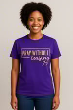 Pray without Ceasing T-shirt serves as a meaningful reminder of our daily stance-To Pray. This design makes it ideal for daily wear or as a thoughtful gift for those seeking encouragement and faith-based inspiration.